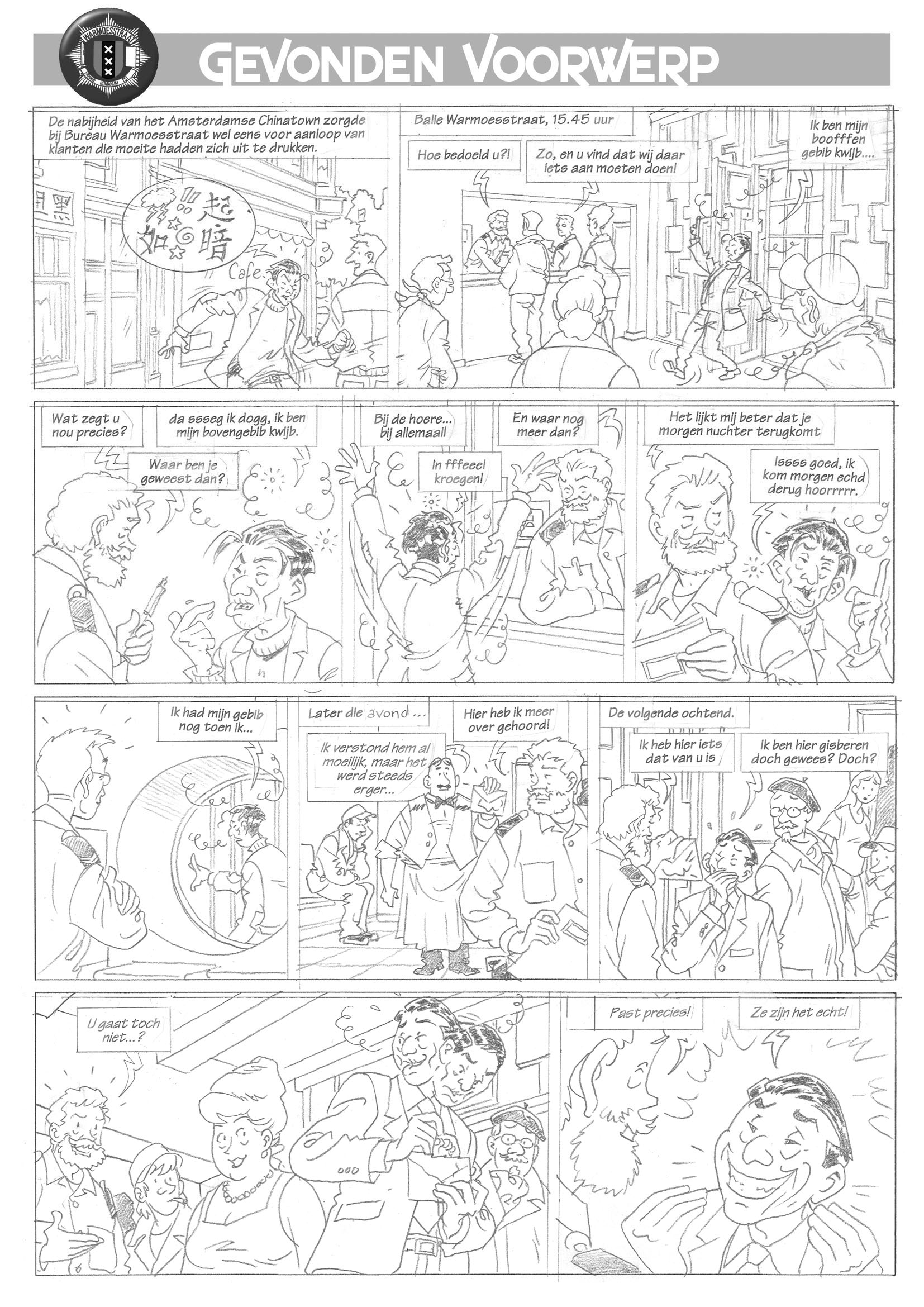 Op een mooie zomerse dag kwam er een Chinees het bureau Warmoesstraat binnen lopen. Hij was zo dronken als een gieter en kon zich nauwelijks staande houden. Op mijn vraag wat ik voor hem kon doen antwoordde hij: "Ik ben mijn gebit kwijt, mijn bovengebit".